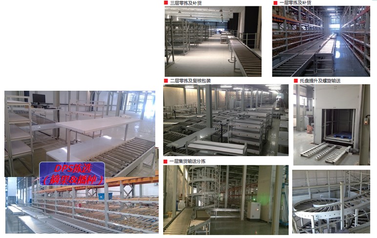 箱輸送系統1km以上,集成螺旋輥道機、連續提升機、托盤提升機及各種箱輸送分揀設備。